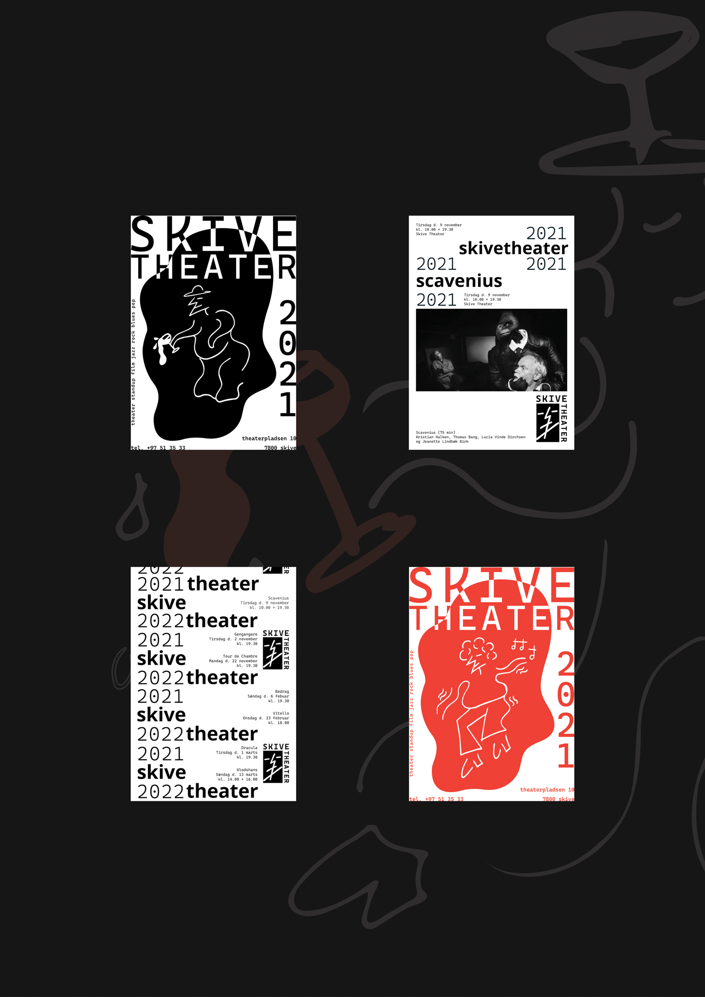 Skive Theater: brand identity/poster design for the local theater in Skive Municipality.