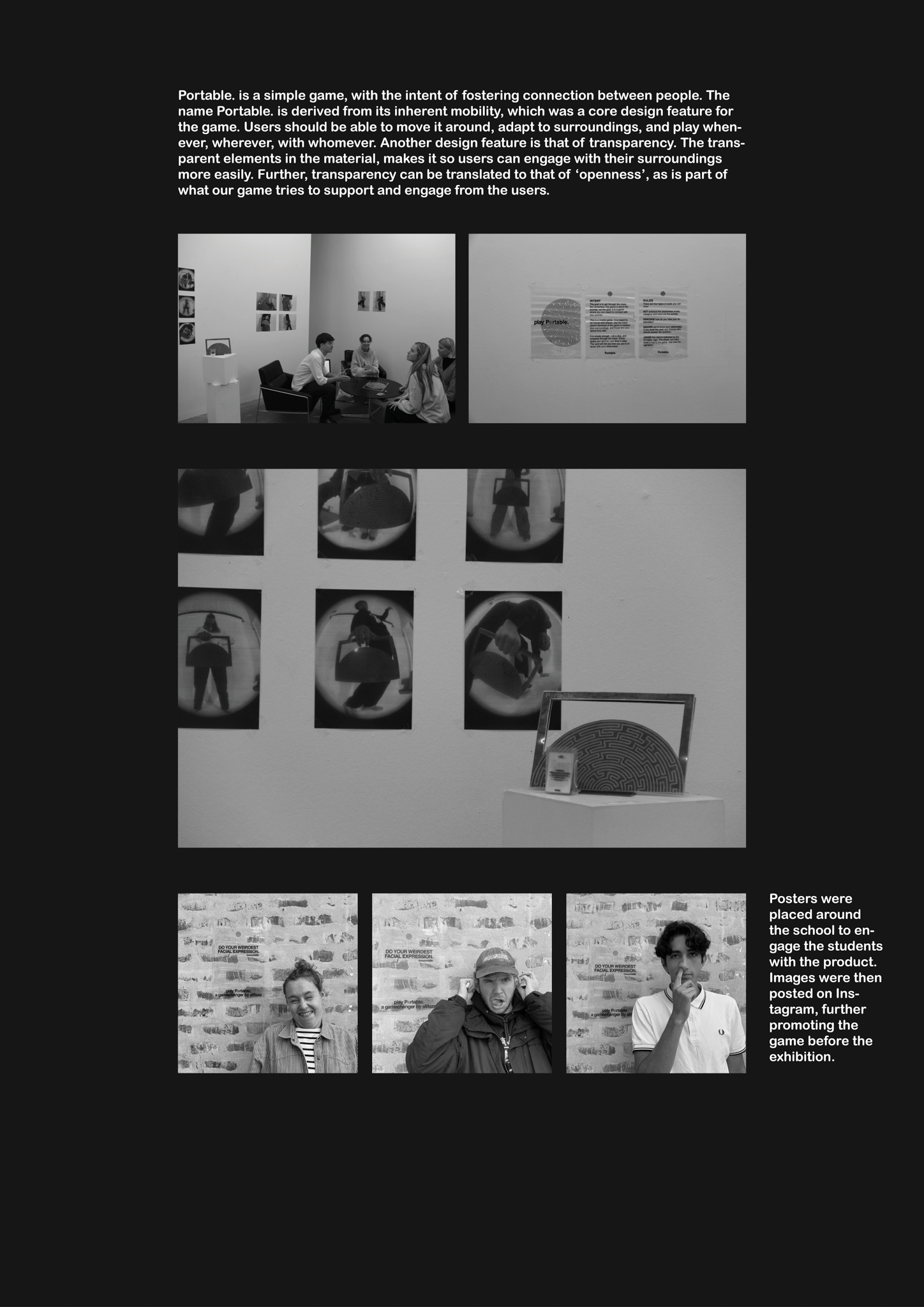 Portable: design of a game that connects people. Project included building the prototype of the game, the aesthetic and a social media campaign that surrounds it.